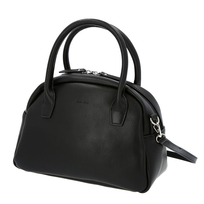 ・なめらかな手触りのフェイクレザーを使用、シルバーの金具使いがおしゃれなボストンバッグ。