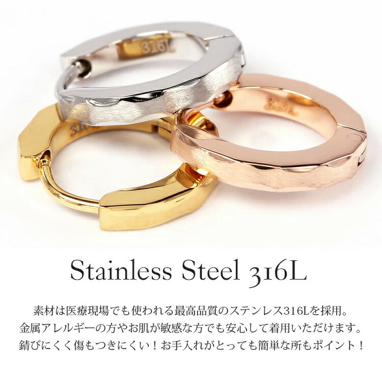 楽ギフ対応について 商品概要:フープピアス ステンレス316L 低アレルギー素材 SUS316 お肌に優しい低アレルギー素材のステンレス316(SUS316L)を使用したフープピアスです。