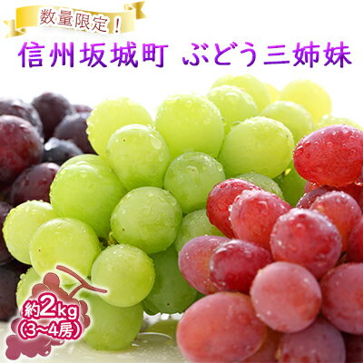 【ふるさと納税】数量限定!「ぶどう三姉妹」3種 2kg(3〜4房) ナガノパープル・ シャインマスカット・ クイーンルージュ 【 果物類 フルーツ 葡萄 ブドウ デザート おやつ 食べ比べ 秋の味覚 長野県産 坂城町産 産地直送 】 お届け:2022年9月下旬〜10月初旬