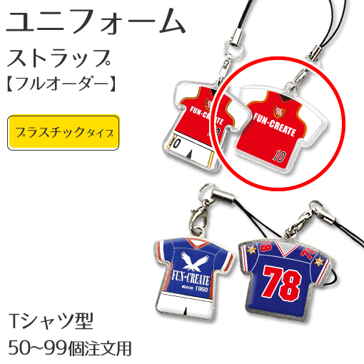 そっくり再現! ユニフォーム ストラップ 【フルオーダー】【○Tシャツ型】【○□50〜99個】【□プラスチックタイプ】 ユニホーム 部活 引退 プレゼント 卒業 記念品 部活 卒部 プレゼント スポーツ 名入れ 入団記念品 オリジナル ★ 詳しく見る