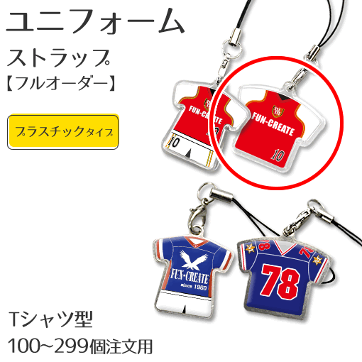 そっくり再現! ユニフォーム ストラップ 【フルオーダー】【○Tシャツ型】【○□100〜299個】【□プラスチックタイプ】 ユニホーム 部活 引退 プレゼント 卒業 記念品 部活 卒部 プレゼント スポーツ 名入れ 入団記念品 オリジナル ★ 詳しく見る