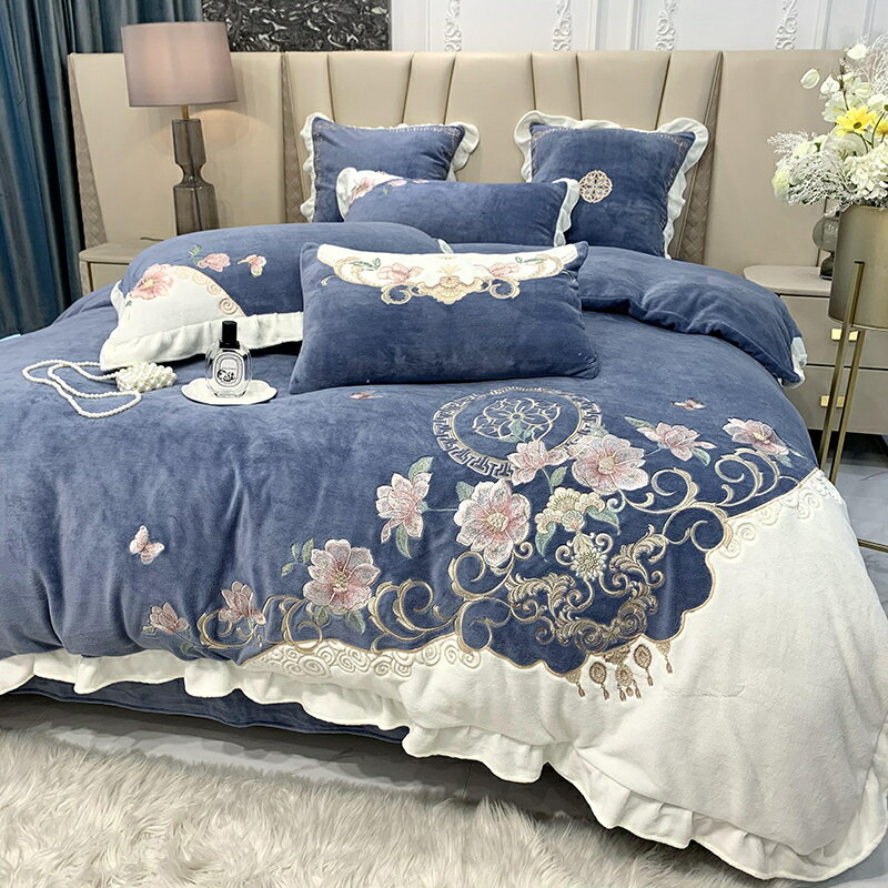 BS40冬用フランネル寝具 ワイドダブル ベッド用品4点セット ボックスシーツ