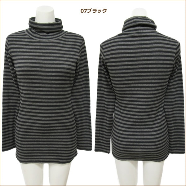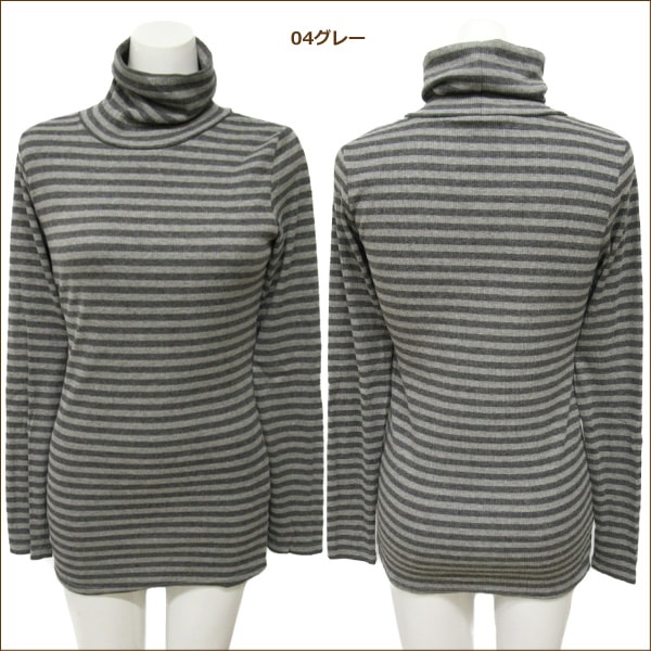 カラー 04グレー 07ブラック 商品説明 ※インナー使いに最適!ボーダー柄リブ編みタートルネック長袖Tシャツ♪